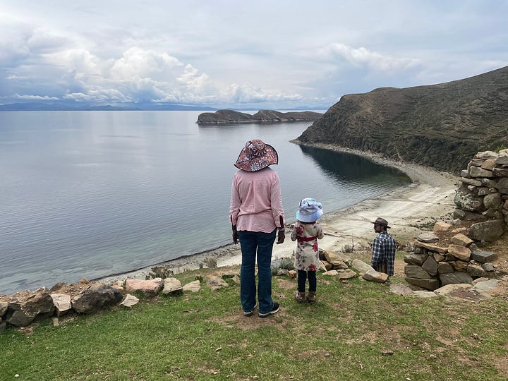 I’m part of a worker self-directed organization, Sustainable Economies Law Center, where we support projects that redistribute wealth, democratize workplaces with collective governance practices and frameworks, and steward communal resources like land and energy. Many of these projects are part of a movement called the Solidarity Economy — a democratic, post-capitalist framework, based on solidarity, interdependence, and transformative justice. The movement in the US is heavily influenced by the movements throughout Latin America; but in all the popular education I’ve read, I’ve never heard about Bolivia's contribution to the movement. I decided to write an article for my professional community — folks working in the solidarity economy, social movement nonprofits throughout the United States, and progressive policy makers — so they can learn about the many ways Bolivians meet their communities' needs through cultural practices we could translate into solidarity economy practices. I believe we need more Indigenous, non-Western influence in how we practice solidarity and community care. Witnessing those new year rituals along the lake helped me realize there is so much anti-capitalist dreamers could learn from Indigenous Bolivian culture.